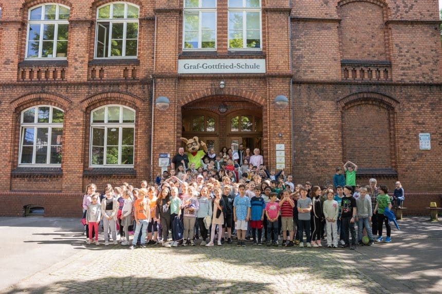 Die Graf-Gottfried-Grundschule belegte den ersten Platz als teilnahmestärkste Grundschule mit einer Beteiligung von 59,18 Prozent. Darüber freuten sich besonders die kommissarische Schulleiterin Sabine Chantre sowie ihre Kolleg:innen und Schüler:innen. Sabine Chantre war sehr gerührt über den Gewinn und teilte ihren Dank und ihren Stolz über die hervorragende Leistung an ihre Schüler:innen mit. Für diese großartige Leistung wurde ebenfalls ein Wanderpokal verliehen.